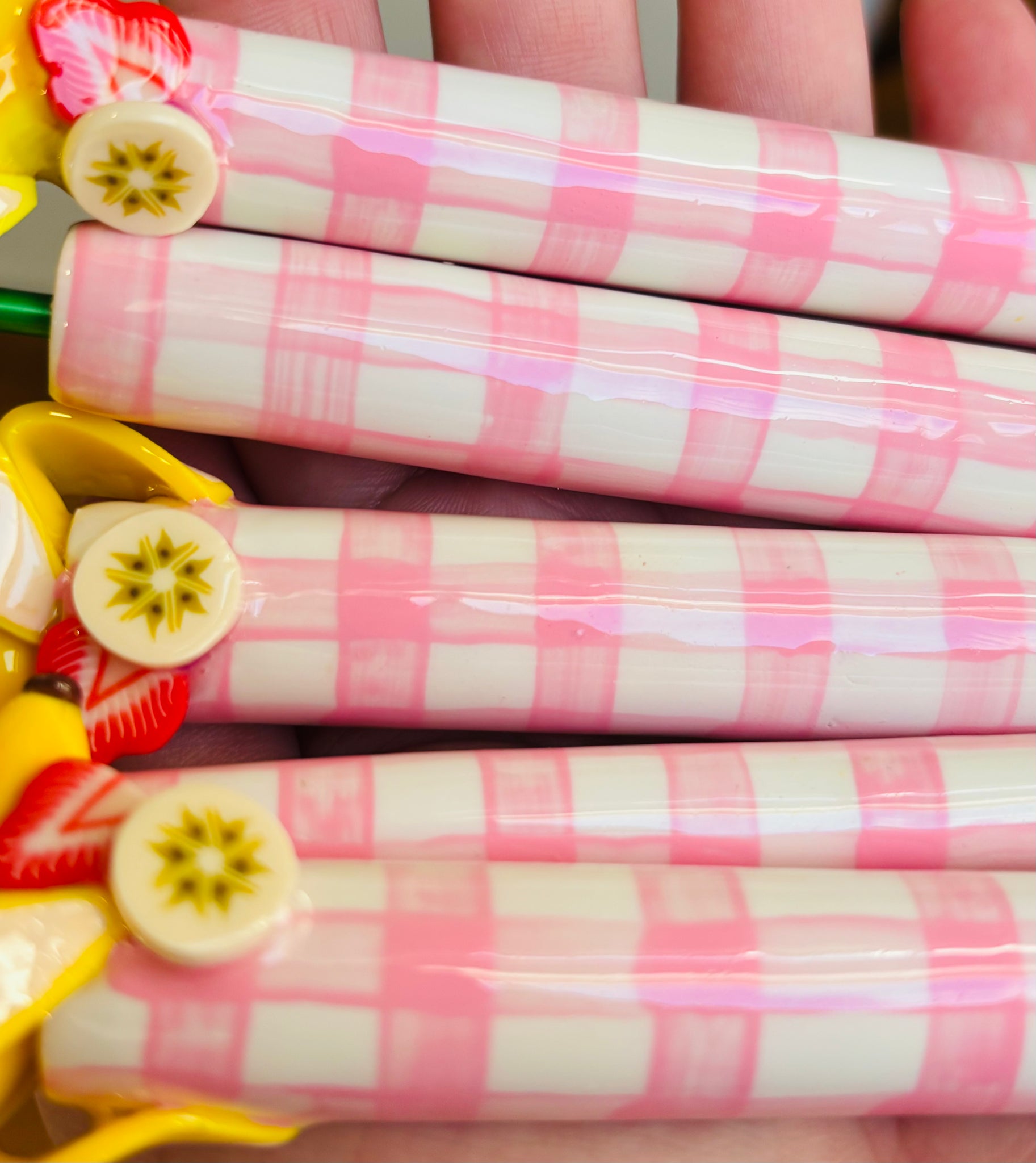 Handmade from polymer clay, with painted/foiled details. Glazed to perfection